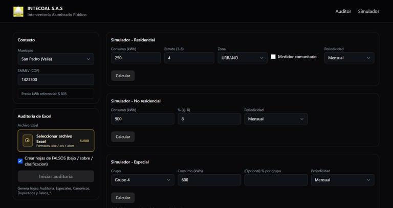 Sistema desarrollado por la empresa, diseñado para apoyar a los municipios en el cálculo, análisis y gestión del impuesto de alumbrado público, garantizando precisión, eficiencia y trazabilidad en los procesos asociado, donde los usuarios pueden consultar el precio del impuesto de AP de su municipio